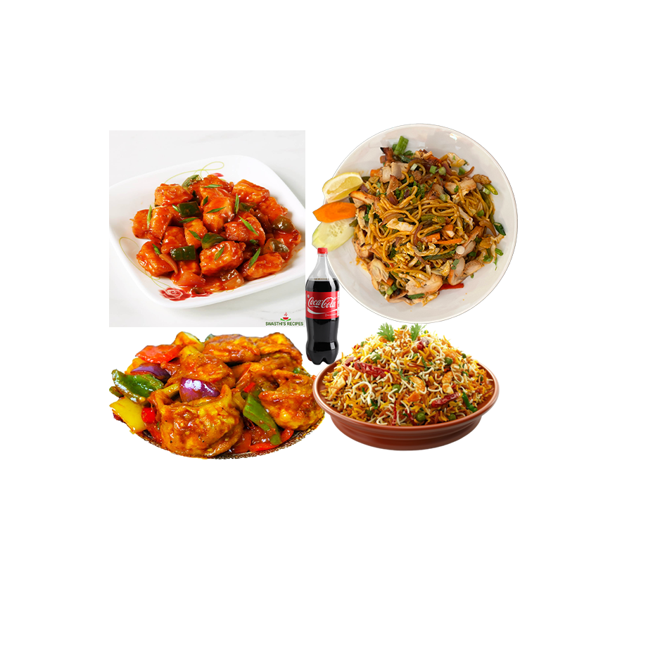 CHICKEN C MOMO,CHICKEN CHOWMIEN,CHICKEN CHILLY WITH BONE,BUFF FRIED RICE ,COKE 500ML.