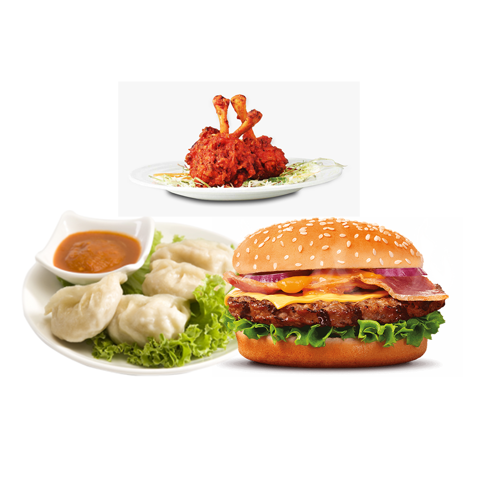 CHICKEN LOLLYPOP 3 PCS , CHICKEN MOMO ,CHICKEN BURDER .